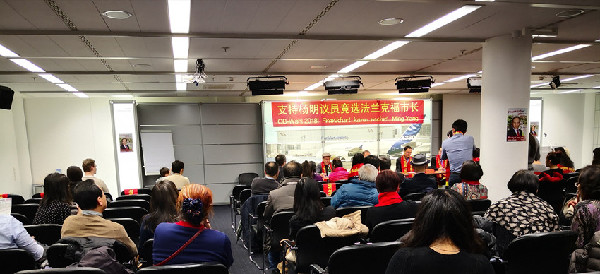 當地時間20日下午,近百名旅居德國法蘭克福的華人在德國法蘭克福機場舉行會議,為首位競選法蘭克福市市長的德國華人楊明先生吶喊助威,組織選票。