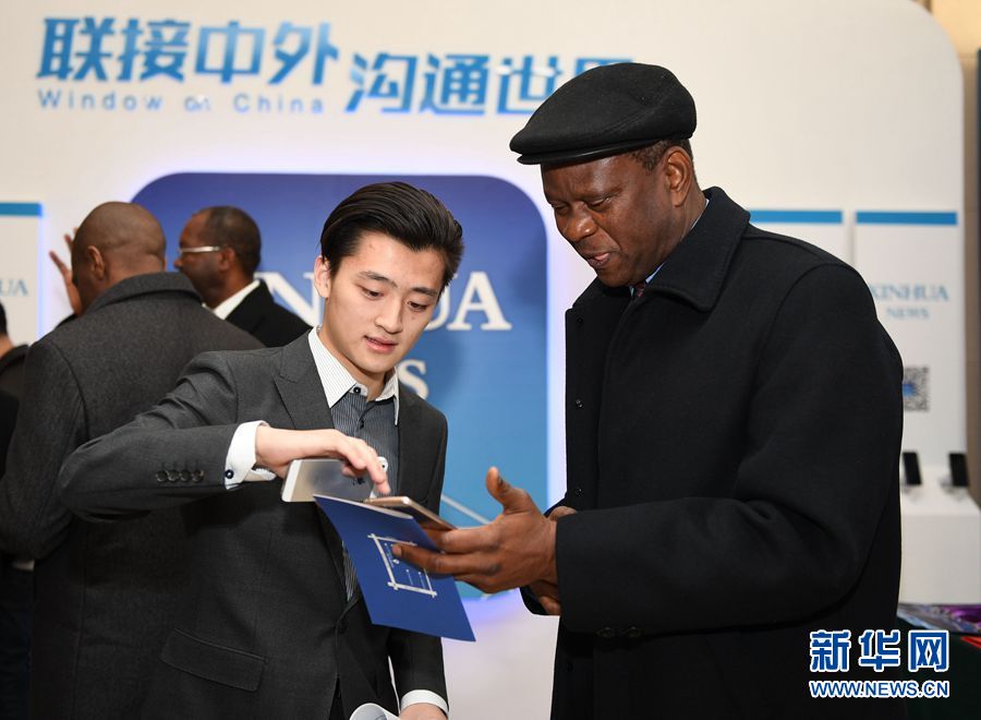 1月23日上午10:00,新華社英文客戶端上線發布會在總社大廈多功能廳舉行。圖為工作人員向嘉賓介紹新華社英文客戶端。新華社記者 李賀攝