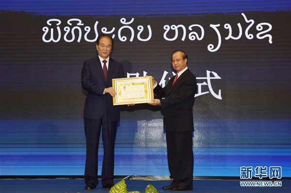 2月2日,在老撾首都萬(wàn)象舉行的首屆“一帶一路”老-中合作論壇開(kāi)幕式上,老撾政府向新華社及新華社社長(zhǎng)蔡名照分別授予自由勛章,以表彰新華社長(zhǎng)期以來(lái)為加強(qiáng)老中合作關(guān)系以及為老撾國(guó)家通訊社發(fā)展所作的積極貢獻(xiàn)。首屆“一帶一路”老-中合作論壇2日在老撾首都萬(wàn)象開(kāi)幕。論壇圍繞中共中央總書(shū)記、國(guó)家主席習(xí)近平去年11月對(duì)老撾進(jìn)行國(guó)事訪問(wèn)達(dá)成的各項(xiàng)成果,探討“一帶一路”倡議與老撾國(guó)家發(fā)展戰(zhàn)略對(duì)接,共商中老發(fā)展合作大計(jì)。新華社記者 秦晴 攝