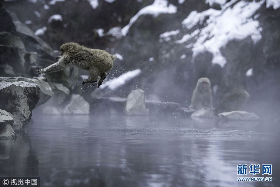 2018年2月18日訊(具體拍攝時間不詳),日本長野縣地獄谷,活潑的猴子在溫泉中跳進跳出,嬉戲休息。地獄谷野猿公苑地處長野縣的志賀高原,由于這里的噴泉不斷地從地殼里噴射出蒸汽,故被稱為“地獄谷”。冬季,這里最低氣溫低于零下10℃,屬于極寒地帶。(圖片來源:視覺中國)