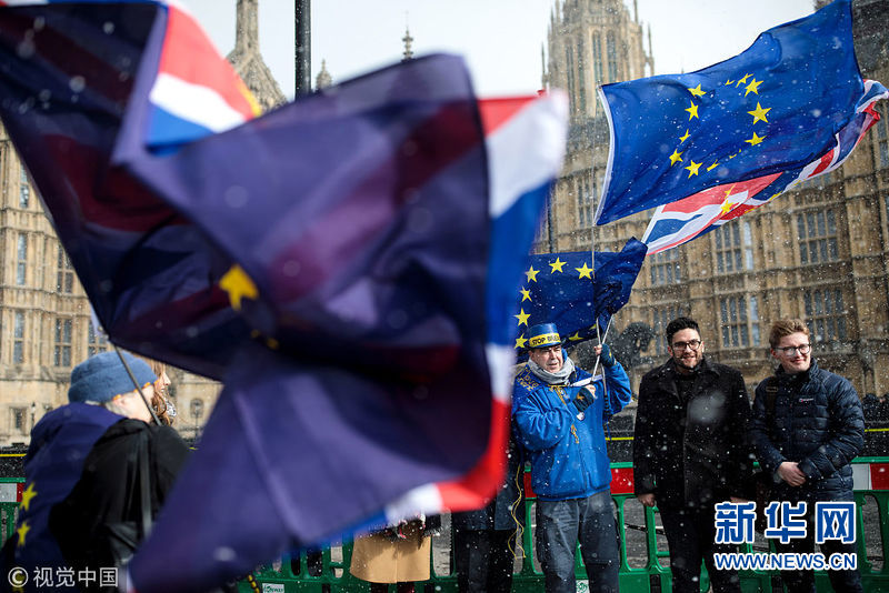 英國民眾議會外舉歐盟旗幟抗議“脫歐”