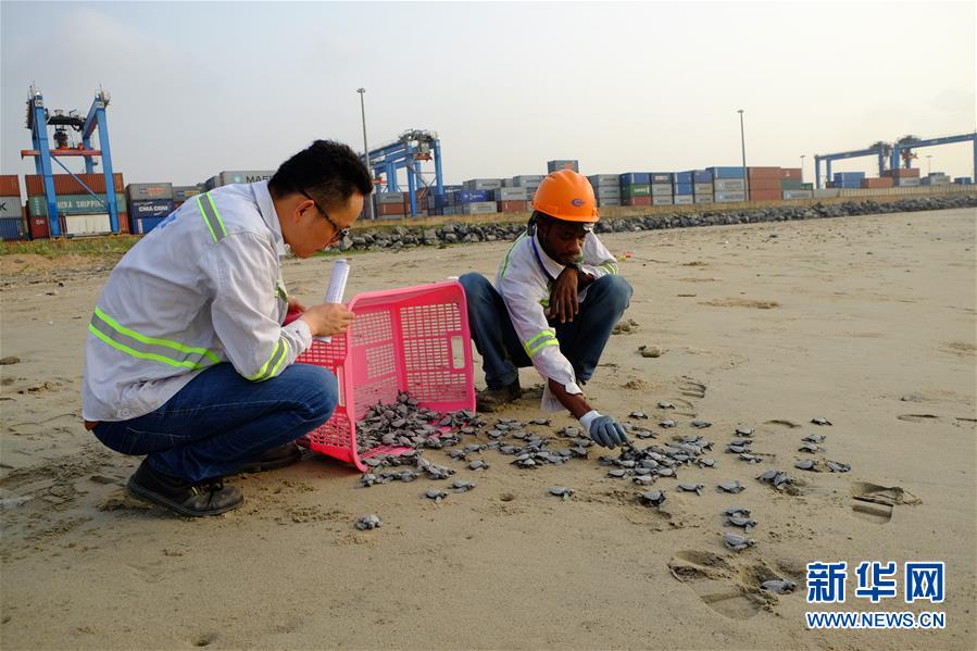 每年10月至次年3月是加納海域海龜?shù)漠a(chǎn)卵與孵化期,成年海龜會(huì)陸續(xù)來到海灘產(chǎn)卵,繁衍下一代。為了保障項(xiàng)目工程區(qū)域海龜正常產(chǎn)卵孵化,承建單位中國港灣工程有限責(zé)任公司(中國港灣)2017年11月建立了海龜孵化基地,將野生海龜在沿岸產(chǎn)的卵收集起來進(jìn)行集中孵化,在小海龜孵化后放回大海。