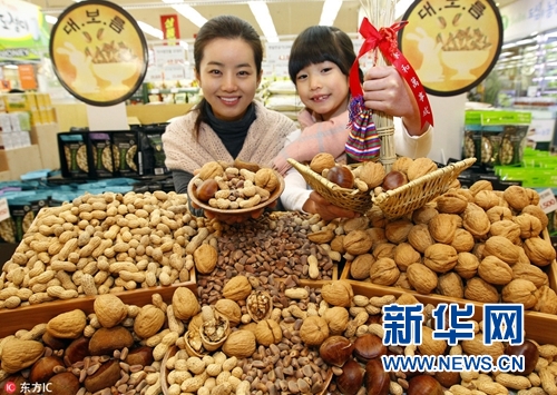 為迎接正月十五,韓國超市促銷堅(jiān)果食品。(圖片來源:東方IC)
