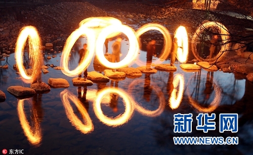 韓國民眾玩火圈辟邪,迎接元宵節(jié)。(圖片來源:東方IC)