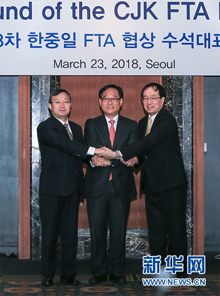 3月23日,中日韓自貿區第十三輪談判首席談判代表會議在韓國首爾舉行。新華社記者 王婧嬙 攝