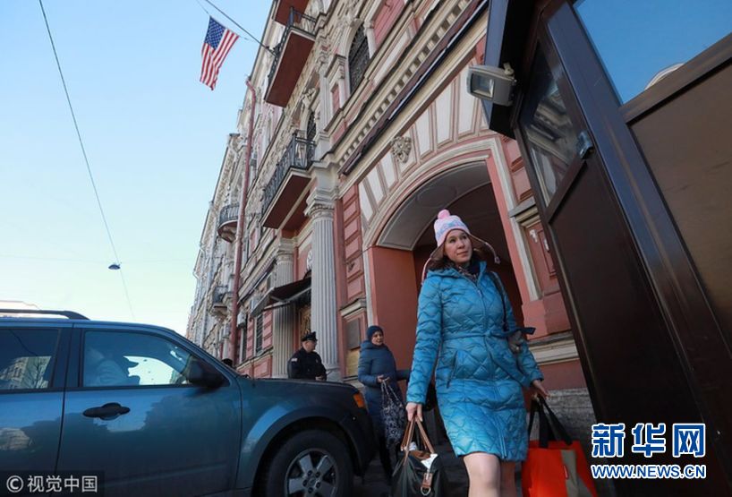 當地時間3月30日,俄羅斯圣彼得堡,美國總領事館。俄羅斯外交部長拉夫羅夫3月29日發布消息稱,作為對“斯克里帕爾事件”的回應,俄羅斯將驅逐60名美國外交官,關閉美國駐圣彼得堡總領事館。(圖片來源:視覺中國)