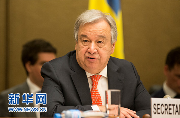 4月3日,在瑞士日內(nèi)瓦萬國宮,聯(lián)合國秘書長古特雷斯出席也門人道援助高級別捐助會議。新華社記者 徐金泉 攝