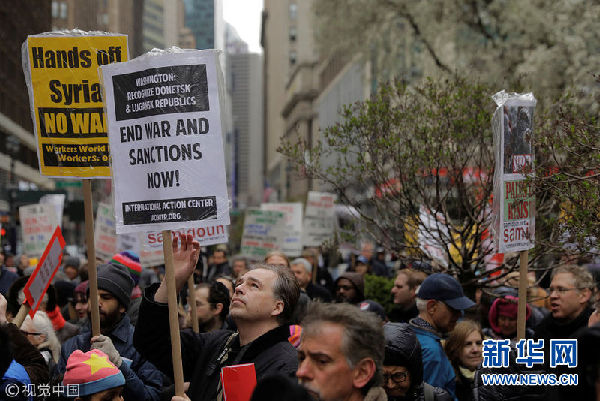 美國民眾舉行反戰游行 抗議美英法聯軍襲擊敘利亞