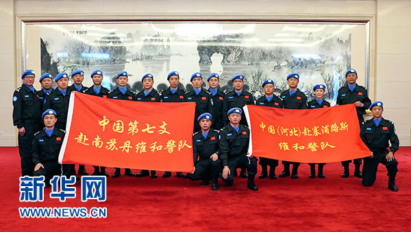 ?。保谷?,中國赴南蘇丹、塞浦路斯維和警隊出征儀式在京舉行。中國第七支赴南蘇丹維和警隊以安徽省公安機關為主組建,共12名隊員,將于4月22日派遣至任務區;赴塞浦路斯維和警隊以河北省公安機關為主組建,共7名隊員(含1名女隊員),將于4月底、7月分批啟程赴任務區。兩支警隊隊員平均年齡37歲,來自經偵、治安、刑偵、出入境等多個警種及基層派出所,外語能力突出,警務專業水平高,皆為各級公安機關的骨干力量。