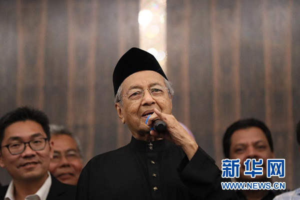 5月10日,在馬來西亞必打靈查亞,馬哈蒂爾宣誓就任總理后出席新聞發(fā)布會(huì)。新華社記者朱煒攝