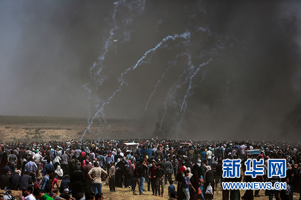 數(shù)萬名巴勒斯坦人14日在加沙地帶與以色列交界地區(qū)舉行抗議示威并與以軍發(fā)生沖突。新華社記者當(dāng)天在沖突現(xiàn)場(chǎng)看到,一些示威者焚燒輪胎,現(xiàn)場(chǎng)升起滾滾濃煙。示威人群還向以軍方面投擲石塊。駐守邊境的以色列士兵發(fā)射催淚瓦斯并實(shí)彈射擊。