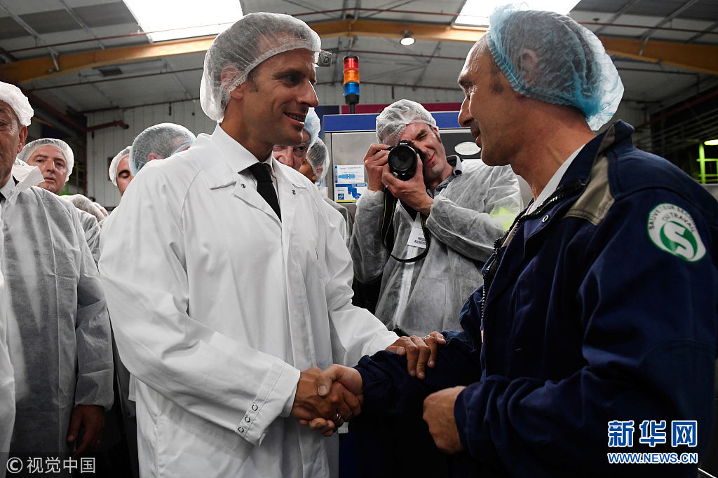 法國總統馬克龍變身“吃貨” 視察工廠不忘品嘗甜點