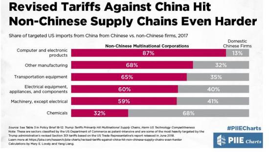 《華盛頓郵報》還介紹說,得出這一結(jié)論的是美國知名智庫“彼得森國際經(jīng)濟(jì)研究所”。耿直哥也查閱了該研究所的相關(guān)報告,發(fā)現(xiàn)其研究人員通過詳細(xì)的分析發(fā)現(xiàn),特朗普政府對中國發(fā)動的貿(mào)易戰(zhàn)會主要傷及的確實不是中國自己的企業(yè),而是美國以及美國盟友們所獨資持有的中國分公司。