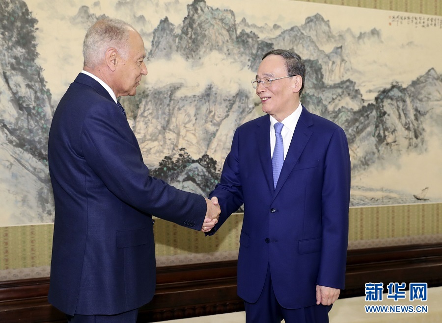 7月9日,國家副主席王岐山在北京中南海會見阿拉伯國家聯盟秘書長蓋特。新華社記者 丁林 攝