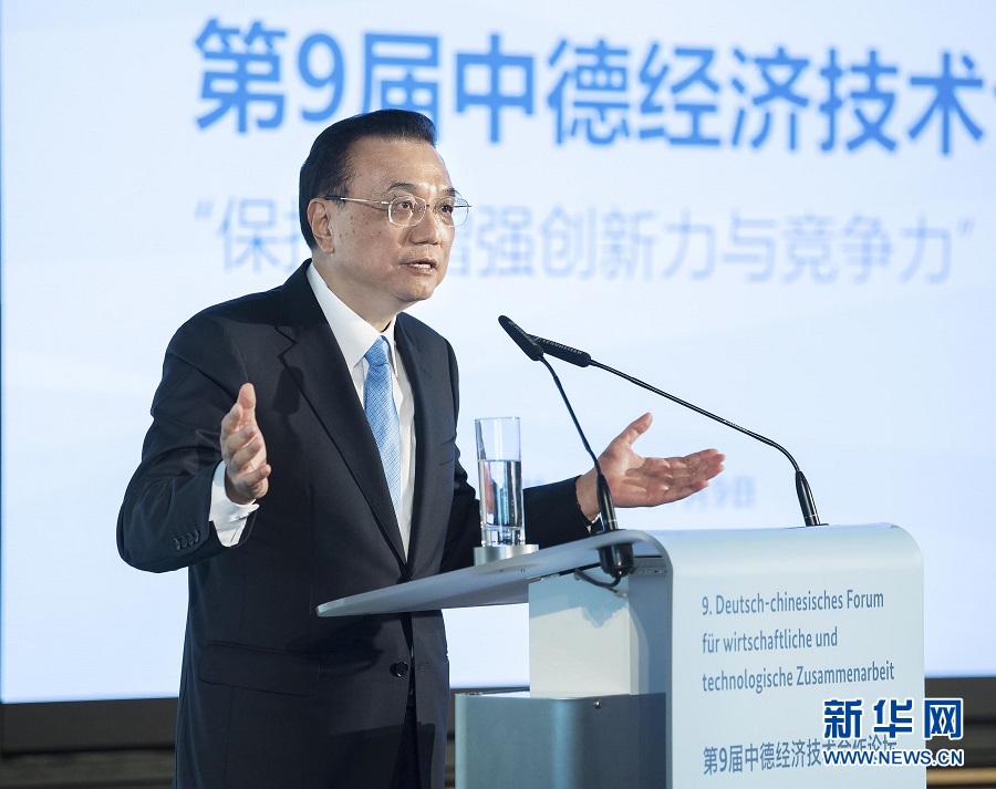 李克強(qiáng)表示,中德合作保持全面穩(wěn)定健康發(fā)展態(tài)勢(shì),長(zhǎng)期引領(lǐng)中歐合作,堪稱(chēng)大國(guó)合作的典范,為兩國(guó)乃至世界經(jīng)濟(jì)發(fā)展注入了動(dòng)力。習(xí)近平主席去年對(duì)德國(guó)進(jìn)行成功訪問(wèn),同德方領(lǐng)導(dǎo)人共同規(guī)劃兩國(guó)關(guān)系發(fā)展。我與默克爾總理今天共同主持第五輪中德政府磋商,達(dá)成重要共識(shí)。我們一致同意繼續(xù)鞏固和提升政治互信,夯實(shí)中德全方位戰(zhàn)略伙伴關(guān)系的基礎(chǔ),推動(dòng)兩國(guó)合作向更高水平邁進(jìn),以中德合作的確定性、維護(hù)多邊主義的一貫性為世界和平與發(fā)展增添穩(wěn)定性。