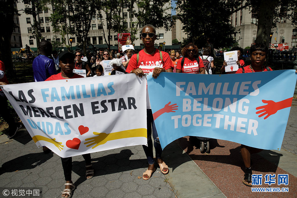 當(dāng)?shù)貢r間2018年7月18日,美國紐約,包括托兒所從業(yè)人員、父母及其子女在內(nèi)的社會各界人士在美國移民和海關(guān)執(zhí)法局(ICE)附近組織示威游行,抗議特朗普政府近期在美國南部邊境實施針對非法移民家庭的強制拘留和家庭成員離散政策。 當(dāng)天,共和黨領(lǐng)導(dǎo)的眾議院通過了支持ICE的決議,并譴責(zé)一些民主黨人和進步積極分子要求廢除ICE的呼聲。(圖片來源:視覺中國)