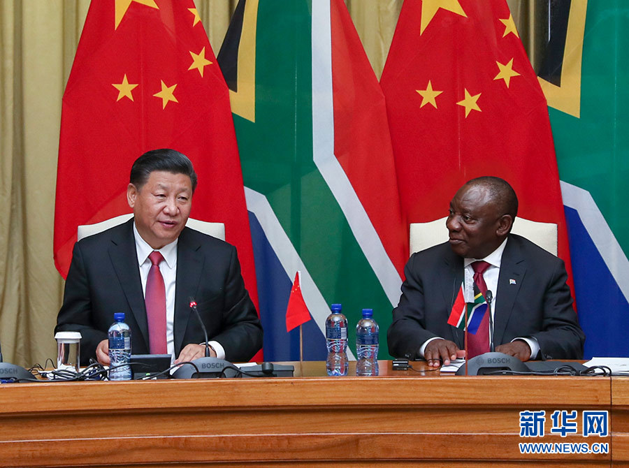 第二,雙方要加強在“一帶一路”和中非合作論壇框架內合作,對接發展戰略,深化新經濟領域和朝陽產業交流合作,共享第四次工業革命帶來的發展機遇。中方愿重點推進基礎設施建設、貿易投資、科技創新、金融等合作,支持南非政府發展經濟、創造就業、改善民生、推進社會轉型的努力。