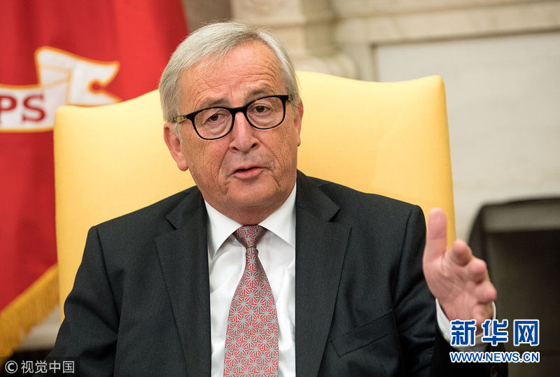 2018年7月25日,美國華盛頓,美國總統特朗普與歐盟委員會主席容克會面。(圖片來源:視覺中國)