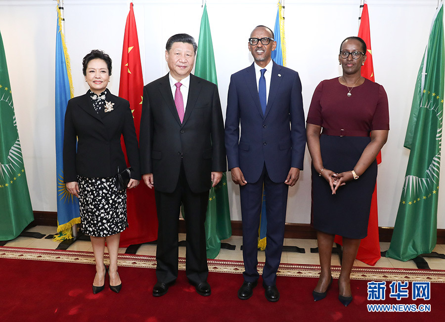 7月23日,國家主席習(xí)近平在基加利同盧旺達(dá)總統(tǒng)卡加梅舉行會(huì)談。這是會(huì)談前,習(xí)近平和夫人彭麗媛同卡加梅和夫人珍妮特合影。 新華社記者 龐興雷 攝