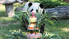 也許是怕生,也許是受夏日高溫影響,9時(shí)許,千呼萬喚始露面的“圓夢(mèng)”對(duì)三層的豪華生日蛋糕并未顯露出絲毫食欲,轉(zhuǎn)而與母親“歡歡”親昵和嬉戲,足足玩耍了半個(gè)多小時(shí)后才回到蛋糕旁開始品嘗。