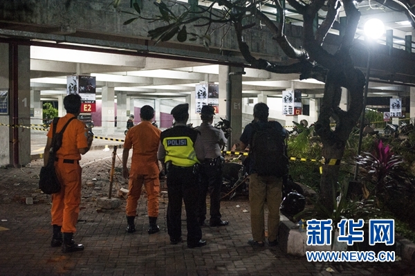 8月5日,在印度尼西亞西努沙登加拉省龍目島以西的巴厘島,幾名安保人員查看一處停車場(chǎng)里的落石。 新華社發(fā)(穆罕默德·福齊·哈尼亞戈攝)