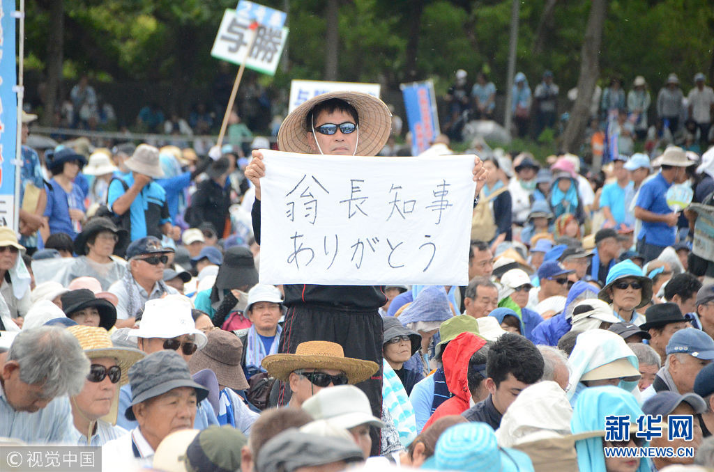 當(dāng)?shù)貢r(shí)間2018年8月11日,日本沖繩縣約7萬(wàn)民眾8月11日在那霸市舉行大規(guī)模集會(huì),反對(duì)駐日美軍將普天間基地遷往名護(hù)市邊野古地區(qū),要求駐日美軍放棄在邊野古地區(qū)新建基地并立即關(guān)閉普天間機(jī)場(chǎng)。當(dāng)天,日本東京都、大阪府、福岡、北海道縣等地民眾也同時(shí)舉行集會(huì)和游行,抗議日本政府推進(jìn)邊野古地區(qū)填海施工。(圖片來(lái)源:視覺(jué)中國(guó))