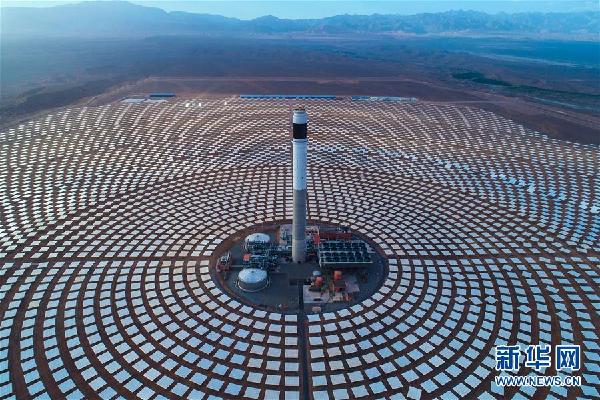 這是2018年6月7日在摩洛哥瓦爾扎扎特拍攝的努奧光熱電站項目三期工程(航拍照片)。從2015年起,中國電建集團下屬的山東電建三公司在瓦爾扎扎特承建努奧光熱電站項目二期和三期工程。努奧光熱電站項目是目前全球規模最大的光熱電站項目。二期工程槽式光熱電站現已進入商業運行,三期塔式光熱電站也于近日順利實現首次并網目標。待項目完全建成后,努奧光熱電站將為超過100萬的摩洛哥家庭提供清潔能源,還可以把富余的電能出口到歐洲。 新華社發/山東電建三公司供圖