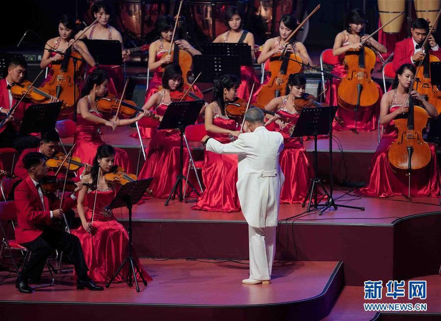 9月8日,演員在表演節目。當日,朝鮮在平壤體育館舉行國慶文藝演出。 新華社記者 邢廣利 攝