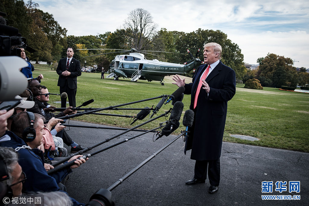 當(dāng)?shù)貢r(shí)間2018年10月31日,美國(guó)華盛頓,美國(guó)總統(tǒng)特朗普啟程前往佛羅里達(dá)州出席競(jìng)選集會(huì),在白宮南草坪發(fā)表講話。特朗普稱,計(jì)劃部署在美墨邊境的現(xiàn)役軍人數(shù)量或增加至15000人,以嚴(yán)防來(lái)勢(shì)洶洶的“大篷車(chē)”移民。(圖片來(lái)源:視覺(jué)中國(guó))