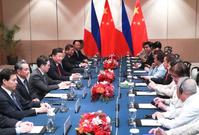 11月21日,國家主席習近平在馬尼拉會見菲律賓眾議長阿羅約和參議長索托。新華社記者 龐興雷 攝