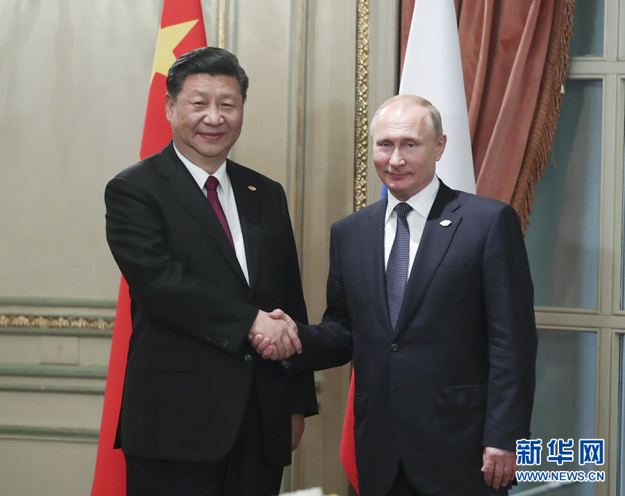 ——會見俄羅斯總統普京,指出明年是中俄建交70周年,這將是兩國關系發展的主線,屆時要舉辦隆重熱烈、豐富多彩的慶?;顒?,推動各領域務實合作取得更多實實在在的成果。