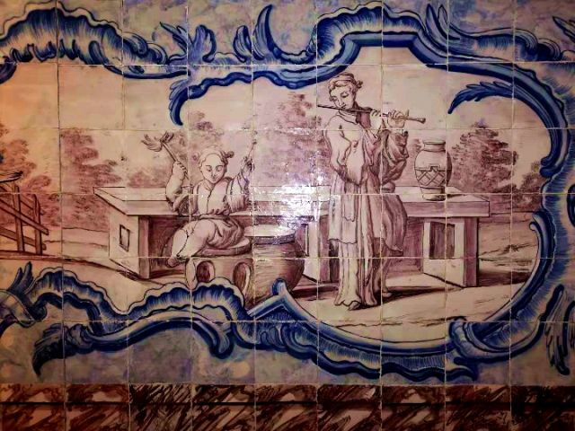 葡萄牙瓷磚畫展現(xiàn)的中國人生活場景。(新華社記者錢彤攝)