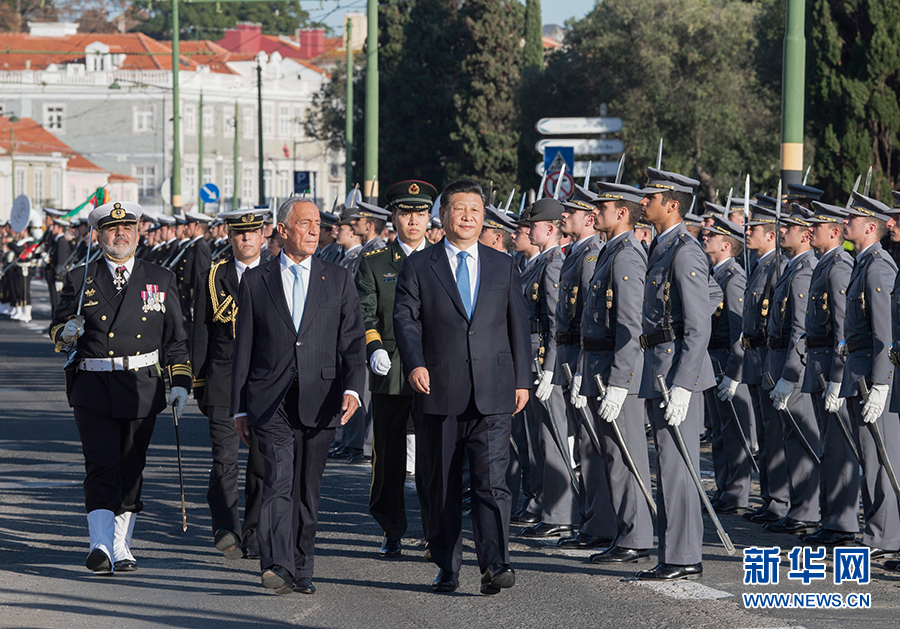 冬日的里斯本,晴空萬里、陽光燦爛。當地時間4日下午,在伊比利亞半島最大的帝國廣場上,葡萄牙總統德索薩為習主席舉行隆重且富有葡萄牙特色的歡迎儀式。