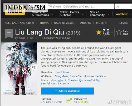 《流浪地球》在國內天天刷屏,它在大洋彼岸口碑又如何呢?