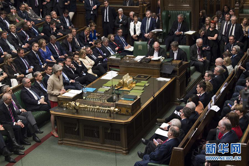 3月29日,在英國倫敦,英國首相特雷莎·梅出席議會下院辯論。英國議會下院29日投票否決了“脫歐”協(xié)議關(guān)鍵部分,這進(jìn)一步增加了英國“脫歐”的不確定性。新華社發(fā)(英國議會攝影師馬克·達(dá)菲攝)