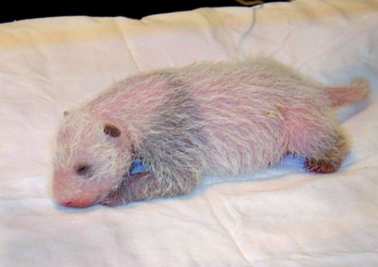 這是2001年12月26日拍攝的剛剛出生幾天的大熊貓“雄浜”的照片。(新華社發)