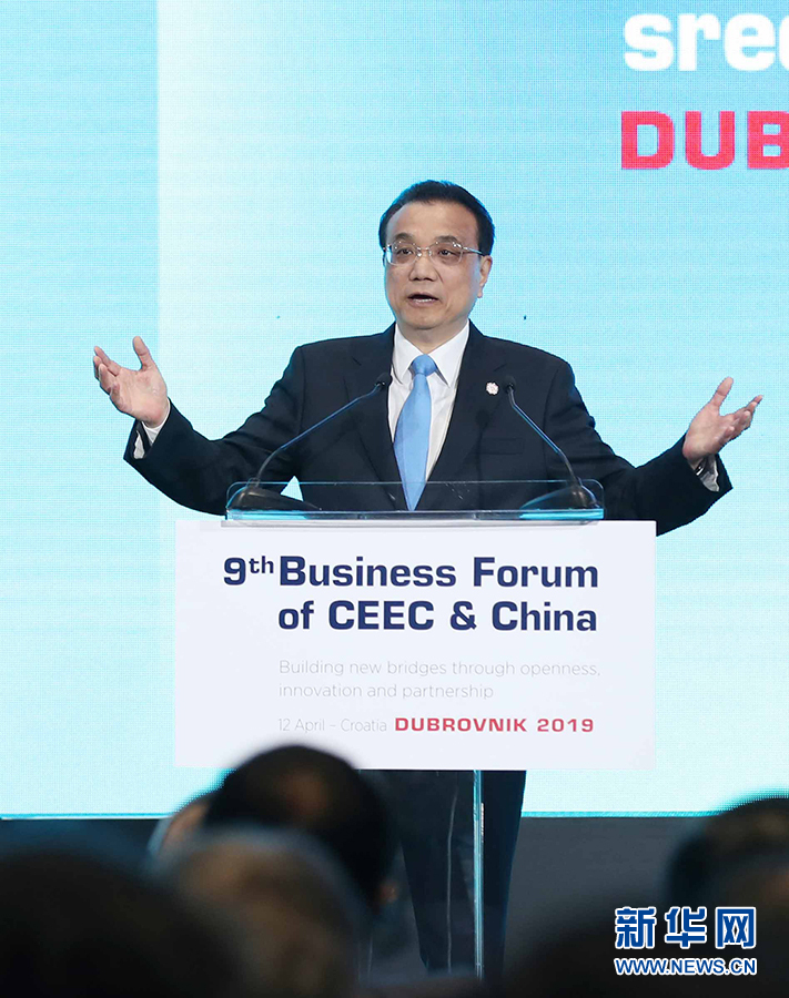 當(dāng)?shù)貢r(shí)間4月12日上午,國(guó)務(wù)院總理李克強(qiáng)在杜布羅夫尼克與中東歐16國(guó)領(lǐng)導(dǎo)人共同出席第九屆中國(guó)-中東歐國(guó)家經(jīng)貿(mào)論壇開幕式并致辭。 新華社記者 劉衛(wèi)兵 攝