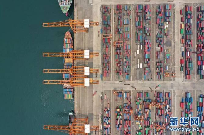 圖為廣西欽州保稅港區碼頭(無人機拍攝)。新華社記者 曹祎銘 攝