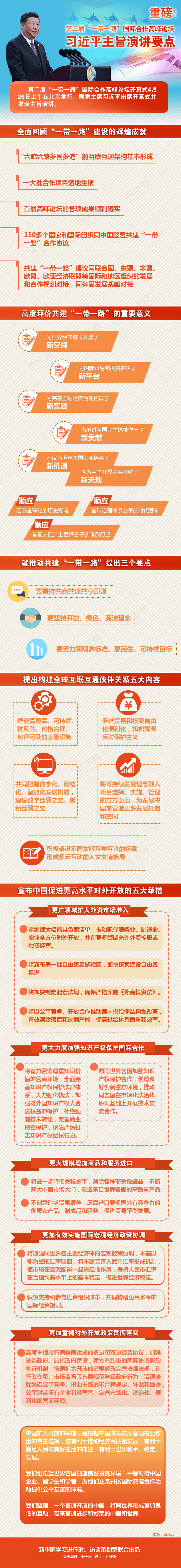 兩年前的5月,首屆高峰論壇擘畫了共建“一帶一路”的合作藍(lán)圖;兩年后的今天,習(xí)近平主席在演講中闡釋了推動(dòng)共建“一帶一路”邁向高質(zhì)量發(fā)展的前進(jìn)方向,宣示了中國(guó)一系列重大改革開放新舉措。