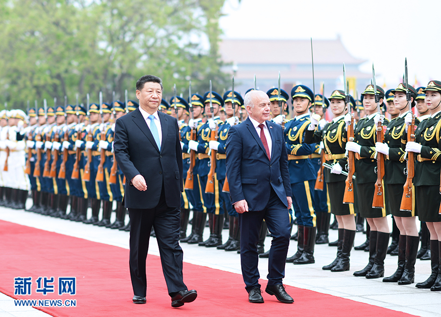 4月29日,國家主席習近平在北京人民大會堂同瑞士聯(lián)邦主席毛雷爾舉行會談。這是會談前,習近平在人民大會堂東門外廣場為毛雷爾舉行歡迎儀式。 新華社記者 謝環(huán)馳 攝