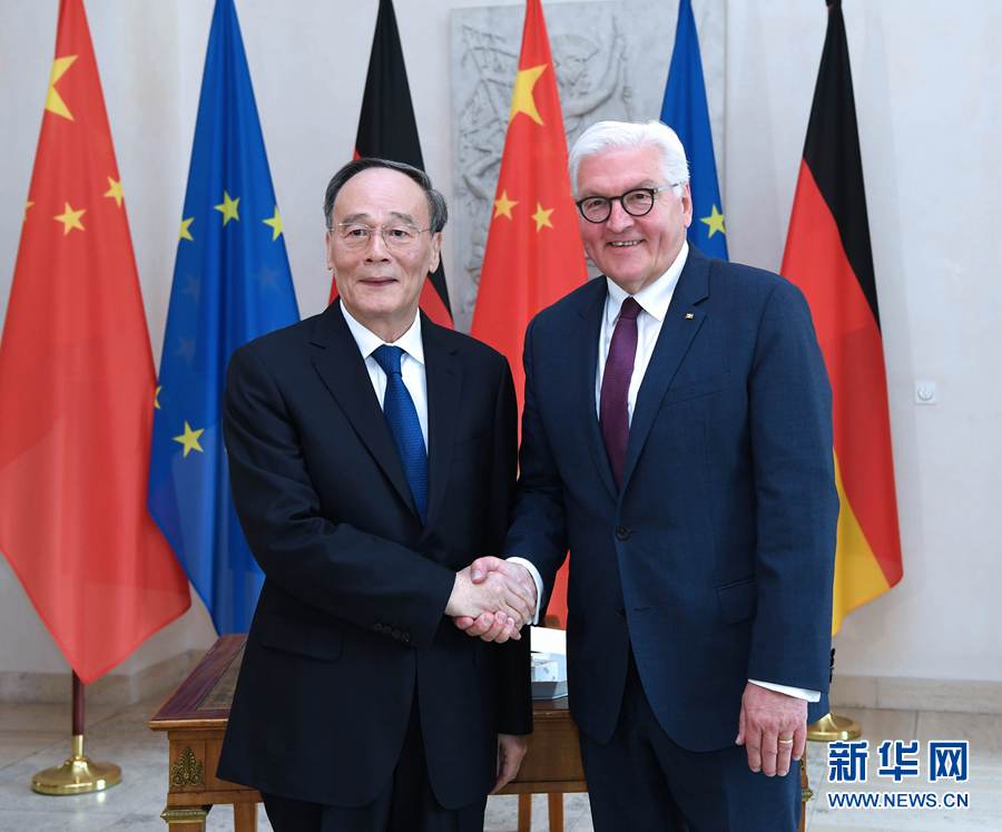 應德國聯邦政府邀請,國家副主席王岐山當地時間5月30日至6月2日訪問德國。這是5月31日,王岐山在柏林會見德國總統施泰因邁爾。 新華社記者 饒愛民 攝