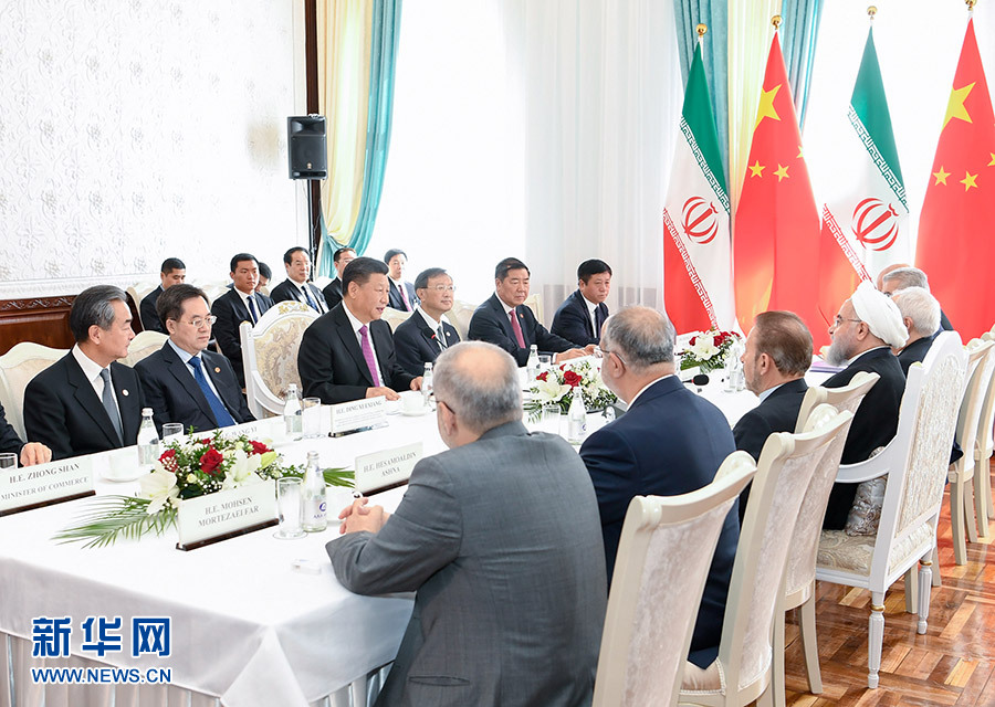 習近平指出,去年上海合作組織青島峰會期間,我同總統先生就中伊關系及共同關心的地區和國際問題深入交換意見,達成重要共識。中方始終從戰略高度和長遠角度看待中伊關系。無論國際和地區形勢如何變化,中方愿同伊方一道努力,推動中伊全面戰略伙伴關系持續穩步發展。
