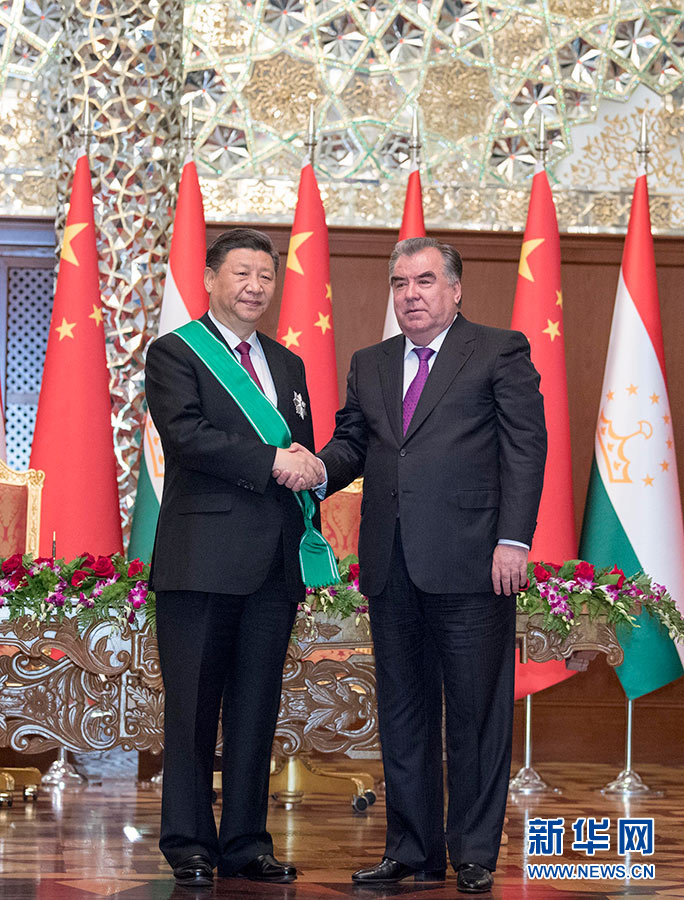 習近平出席儀式 接受塔吉克斯坦總統拉赫蒙授予“王冠勛章”