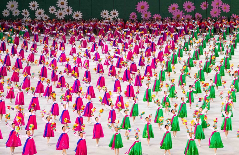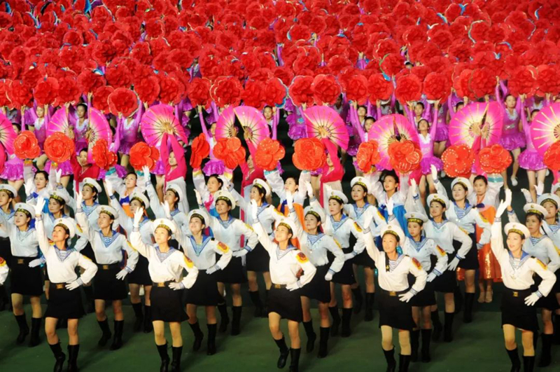 為紀(jì)念金日成誕辰90周年和金正日誕辰60周年,大型團(tuán)體操和藝術(shù)表演《阿里郎》于2002年進(jìn)行了首演,連續(xù)演出10年。