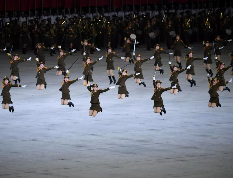 ▲2018年9月9日,演員在平壤綾羅島“五一”體育場(chǎng)表演“輝煌的祖國(guó)”。新華社記者邢廣利攝