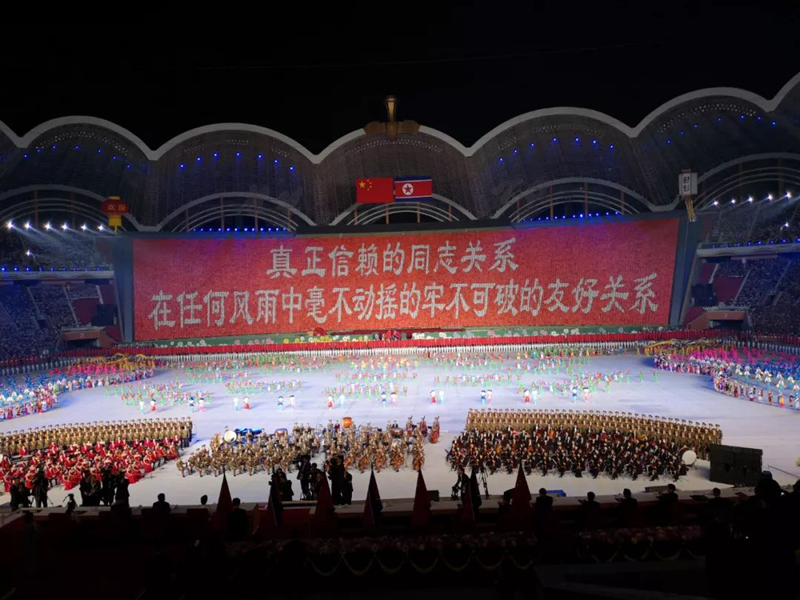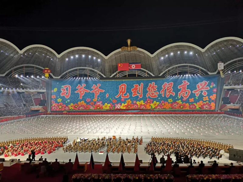這臺(tái)演出為習(xí)近平此訪專(zhuān)門(mén)精心創(chuàng)作,數(shù)萬(wàn)名朝鮮演員參加表演,朝鮮三大樂(lè)團(tuán)首次同臺(tái)獻(xiàn)藝,整場(chǎng)演出氣勢(shì)恢宏、震撼感人。