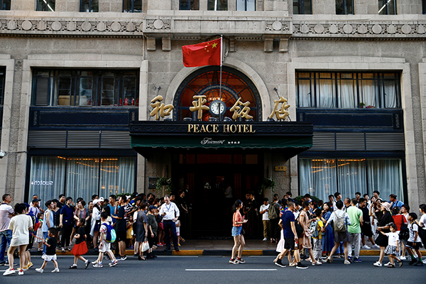 夜幕降臨,在燈光的輝映下,和平飯店更顯滄桑與榮耀。這座已有90年歷史的飯店曾經(jīng)見證過許多中美兩國交往的重要場景,不僅老布什、克林頓、奧巴馬等多位美國前政要曾來過這里,1971年美國乒乓代表團(tuán)訪問中國時(shí),也曾住在這里。
