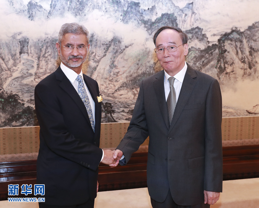 8月12日,國家副主席王岐山在北京中南海會見印度外長蘇杰生。 新華社記者 龐興雷 攝