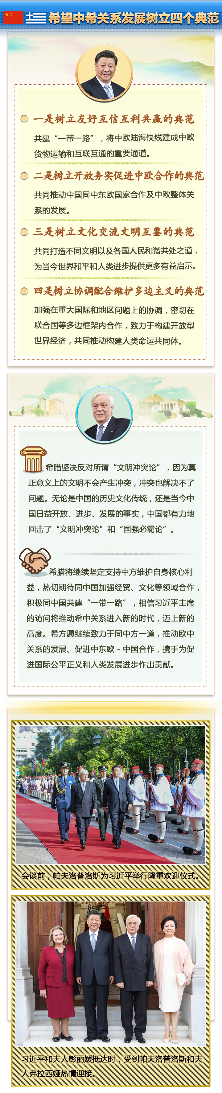 新華社雅典11月12日電 國家主席習近平11月10日晚抵達雅典,開始對希臘進行國事訪問。11日上午,習主席的訪問活動異常密集:向希臘無名戰士紀念碑獻花圈,出席希臘總統帕夫洛普洛斯舉行的隆重歡迎儀式并同帕夫洛普洛斯舉行會談,旋即又同總理米佐塔基斯舉行會談、出席合作文本交換儀式、共同會見記者。中希兩國領導人就雙邊關系及共同關心的國際和地區問題深入交換意見,達成廣泛共識。