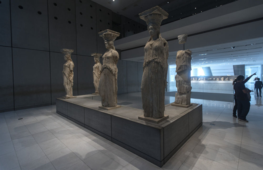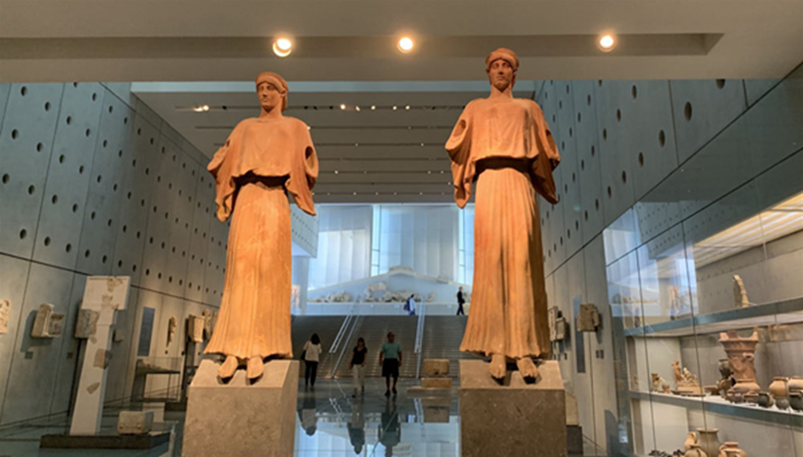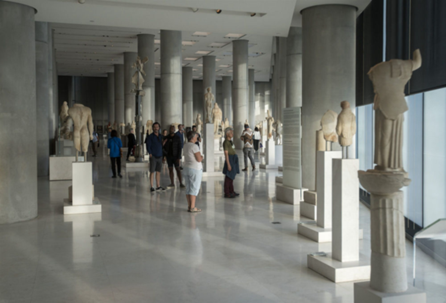 地中海溫暖的陽(yáng)光透過(guò)雅典衛(wèi)城博物館玻璃幕墻灑入展廳,一座座古希臘神話人物和建筑雕像栩栩如生,展示著美和力量,訴說(shuō)著希臘古典藝術(shù)的燦爛輝煌,令人仿佛徜徉于歷史長(zhǎng)河里,沉醉在文明畫卷中。